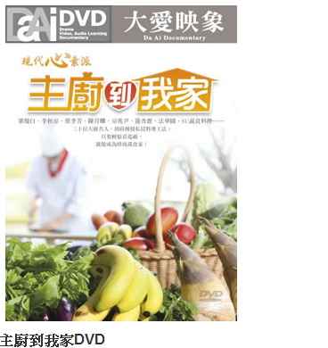 大愛映象-主廚到我家DVD第1集 名人廚房 (一道道富含美味營養 更令人垂涎欲滴的素食精品 也可以從你家的廚房端上桌!) (DVD9一片裝 此片售價250)